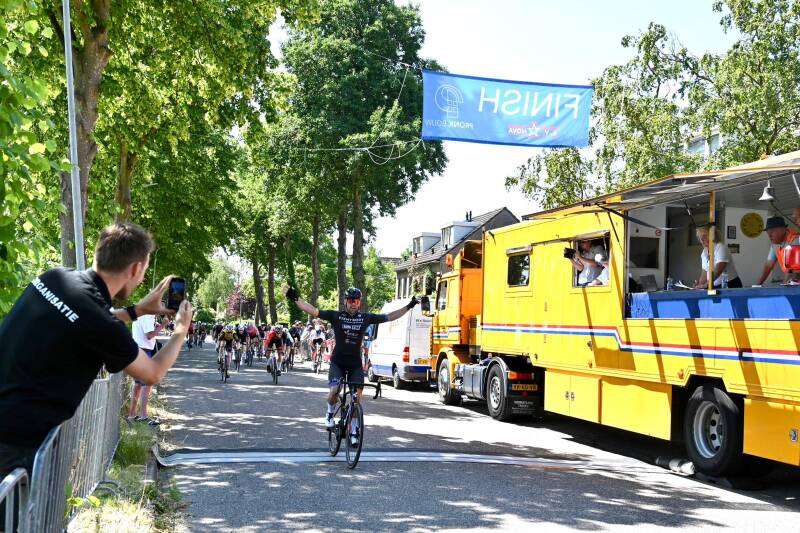 Rond de klok van 11.00 opende de Sportklasse renners het wielerspektakel waarmee zij de primeur hadden om als allereerste categorie over het vernieuwde parcours te rijden. Al vroeg in de wedstrijd zagen we een duo voorop, Bart Sinnige én onze Leon Burger. Lange tijd reden ze voor het peloton uit maar werden ze door een op hol geslagen peloton gegrepen. We zagen nog wat mooie uitvalspogingen maar het peloton maakte zich op voor een massasprint. Lokale topfavoriet Jard Blokdijk maakte zijn status waar door met fietslengtes de winst naar binnen te slepen. Op plek twee zagen we Raul Woudstra en op drie Jaap Dudink.