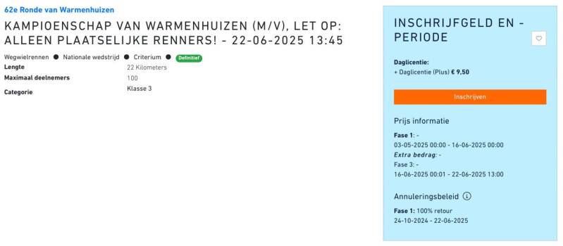 Via MijnKNWU kunnen de licentiehouders inschrijven voor de ronde: VOL=VOL!